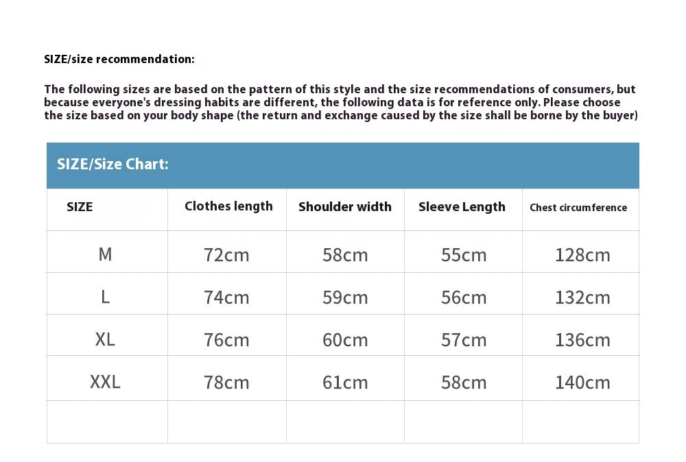 1. Asian sizes are 1 to 2 sizes smaller than European and American people. Choose the larger size if your size between two sizes. Please allow 2-3cm differences due to manual measurement. 2. Please check the size chart carefully before you buy the item, if you don't know how to choose size, please contact our customer service. 3.As you know, the different computers display colors differently, the color of the actual item may vary slightly from the following images.