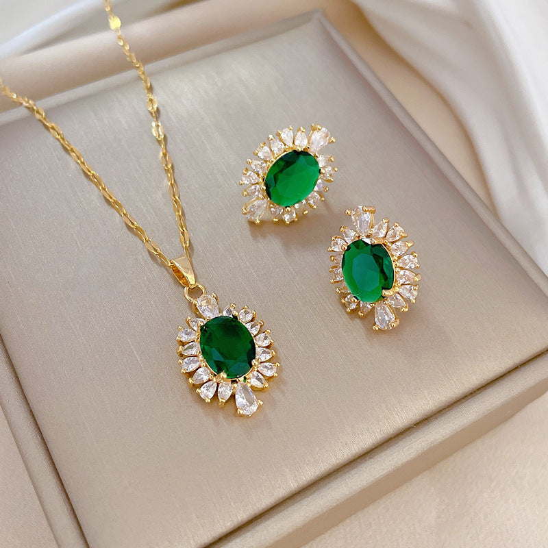Color: D335 necklace [titanium steel chain Copper Pendant],D336 stud earrings [Silver Needle copper real gold plating]]